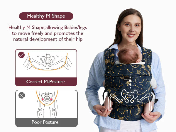 The Minuvy Embrace Baby Carrier supports the natural M position for healthy hips and total comfort. Tested for safety and loved by families worldwide.
