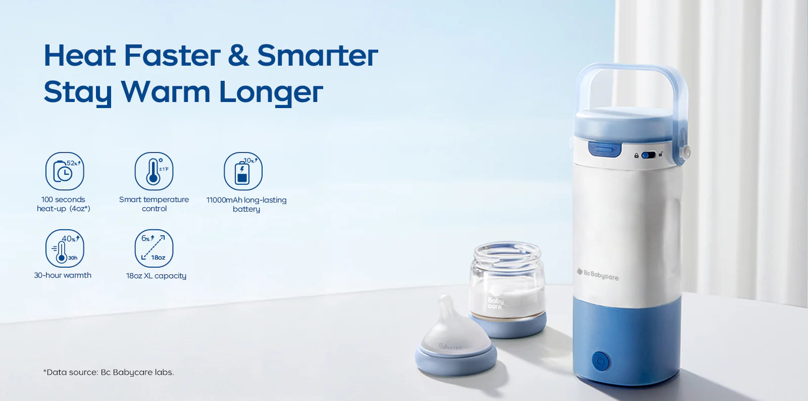 - Autonomie longue durée : Grâce à sa grande capacité de 532 ml et à sa puissante batterie de 11 000 mAh, elle offre jusqu’à 30 heures de chaleur. Idéale pour les tétées nocturnes. Un seul remplissage d’eau suffit pour toute la nuit.