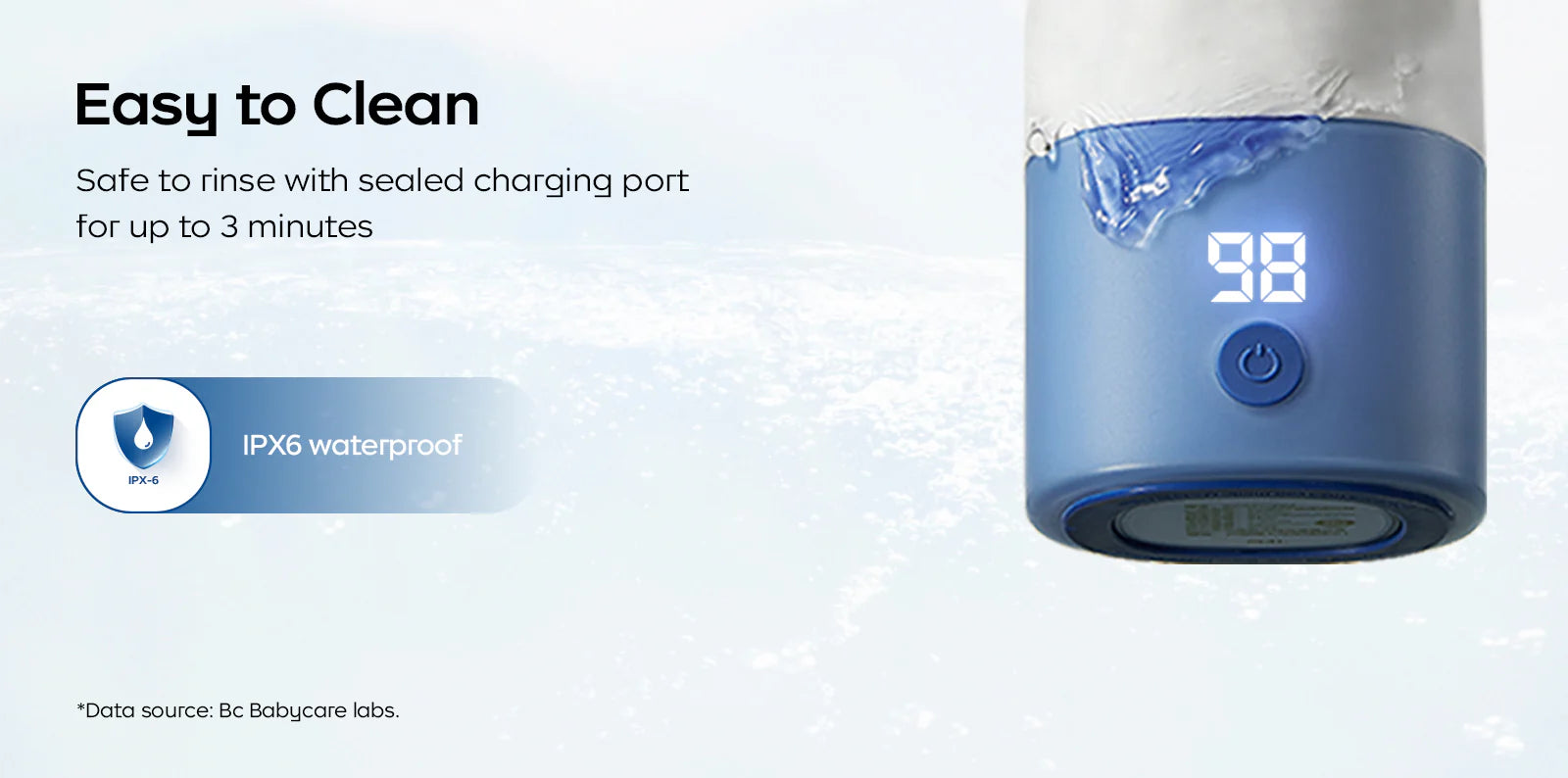 - Conception bien pensée : commande à une touche, conception facile à nettoyer, port de chargement étanche permettant un rinçage jusqu’à 3 minutes et fonction de verrouillage pour les voyages.