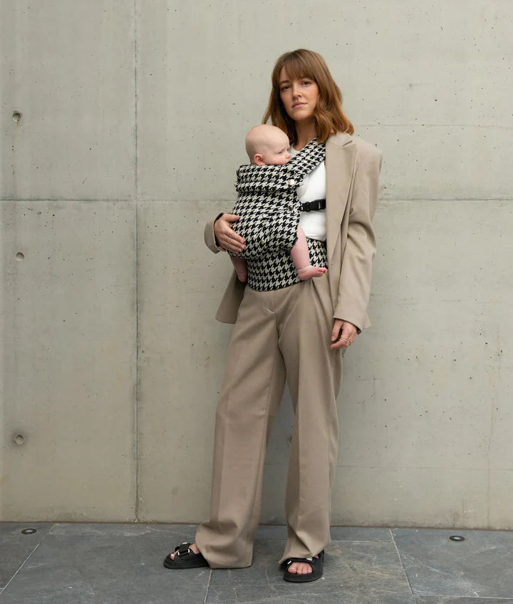 To determine if your baby carrier is ergonomic, check that it supports your baby in a natural, seated position with their knees slightly higher than their buttocks — often referred to as the "M-position" or "frog-leg position", which is important for healthy hip development. Additionally, the carrier should distribute your child’s weight evenly across your body to prevent discomfort or strain, and offer adjustable features to ensure a snug, personalized fit for both you and your baby. High-quality, breathable materials and padded straps are also indicative of an ergonomic design.