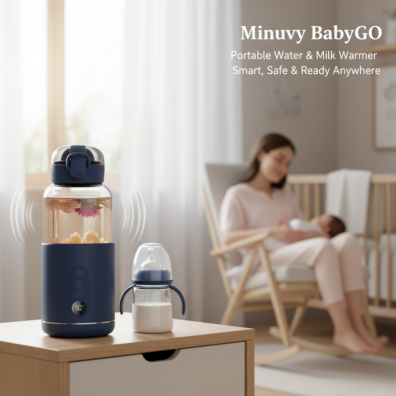 The Minuvy Portable Water & Milk Warmer keeps your baby’s formula ready at the ideal temperature, giving you speed, comfort, and peace of mind. Smart, portable, and trusted by parents everywhere.
